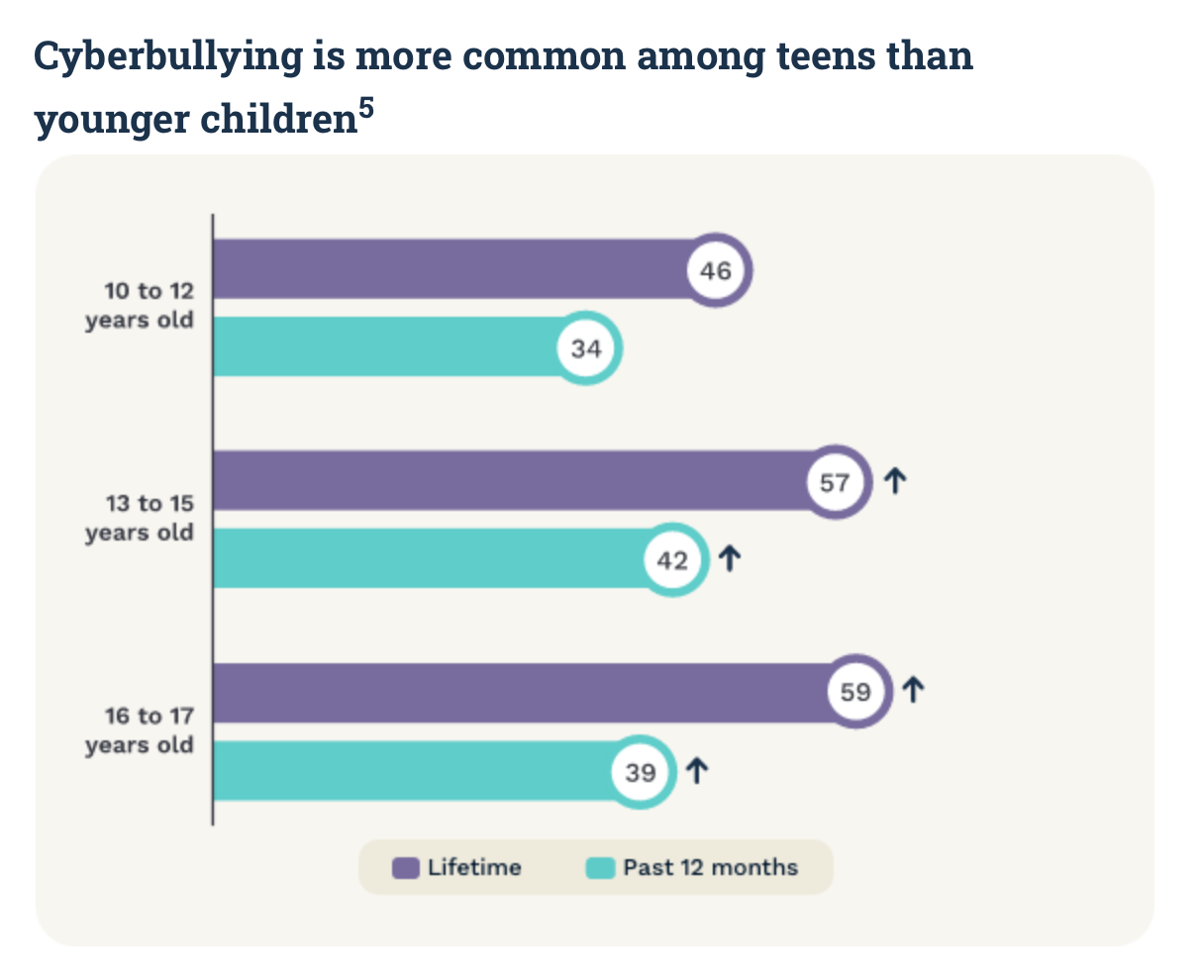 2024年12月至2025年2月期间,有机构对3454名10至17岁的澳大利亚青少年进行了调查,发现69%的人在过去12个月内经历过网络欺凌。其中,56%的女孩曾遭受网络欺凌,男孩的这一比例为50%。