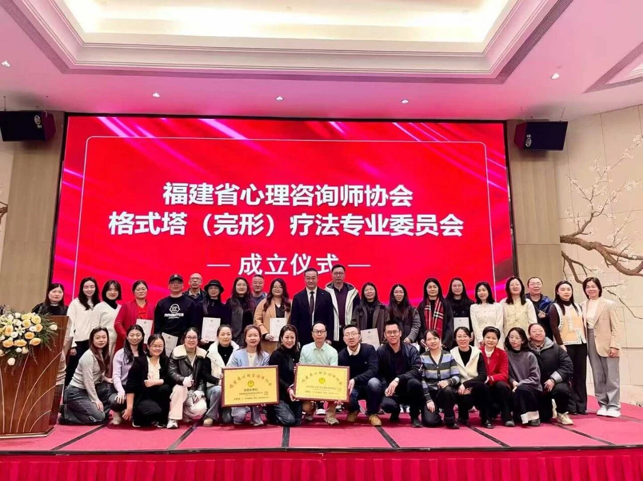 紧随工作坊之后,福建省格式塔疗法专业委员会成立仪式庄严举行。王铮博士在仪式上致辞,他对福建省心理咨询师协会以及全国同行的支持表示感谢,并充分肯定了本地团队的筹备工作。他强调,专业委员会的成立是格式塔疗法在福建地区发展的一个重要里程碑,未来将致力于搭建学术交流、技术研讨与人才培养的专业平台,推动该疗法在本地的规范应用与持续发展。